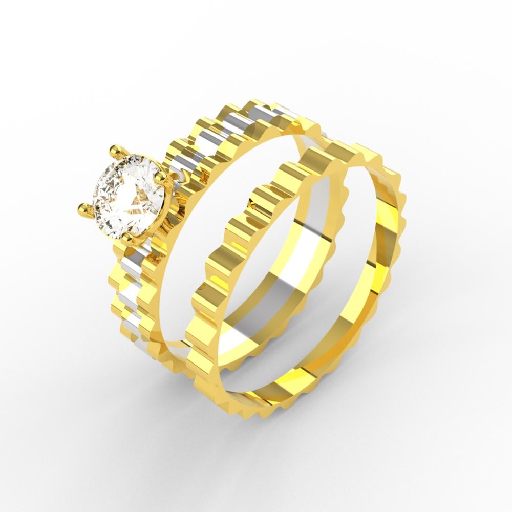 اشعري بالتميز مع خاتم توينز الذهب الجديد بلمسات من الفضة مع قطعة من الزيركون بشكل سنتر ستون الألماس تجعل مظهر القطعة استثنائي عند ارتدائه، طقم توينز مميز بألوانه وتصاميمه وعيار ذهب 21 المفضل لدى الكثير من السيدات، لا تفوتي الفرصة واختاريه ليوم خطبتك.