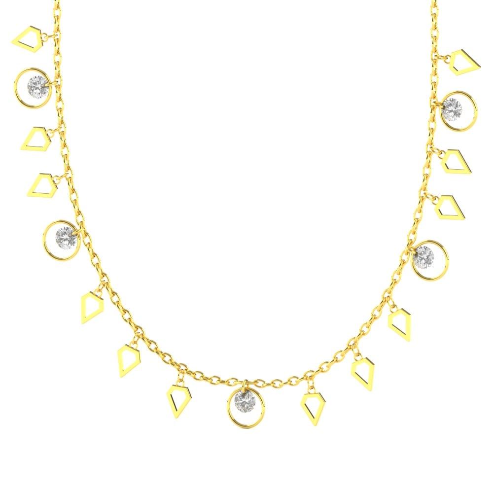 أضيفي رونق لا مثيل له إلى إطلالتك عندما ترتدي قلادة الذهب مع الزركون من طيبة التي تتميز بالرقة في تفاصيلها حيث أنها مصنوعة من الذهب الأصفر اللامع وينسدل منها بعض الأشكال الذهبية مع أحجار الزركون المميزة.